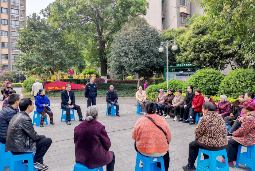社区民警召开院坝会普法。重庆市公安局高新区分局供图