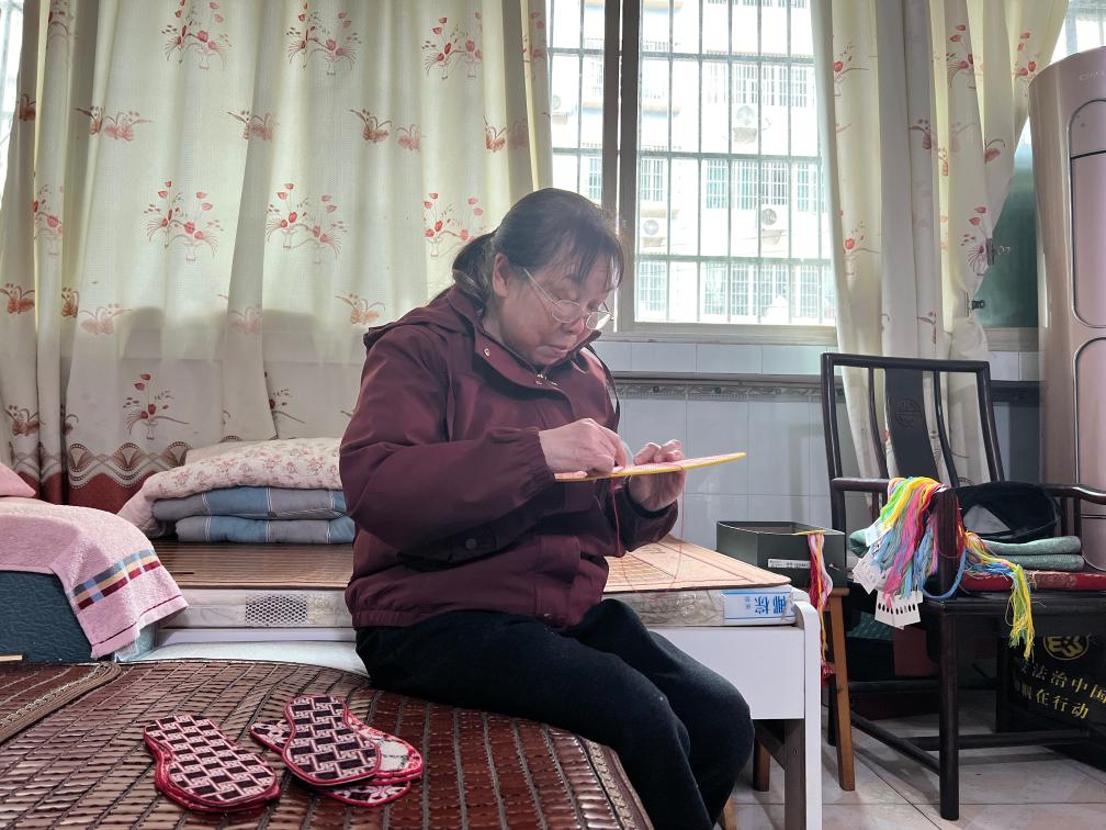 重庆大足,张兴会的家中。72岁的她,戴着老花镜,一针一线,在鞋垫上绣着图案。每天绣四五个小时,五六天才能绣完一双。