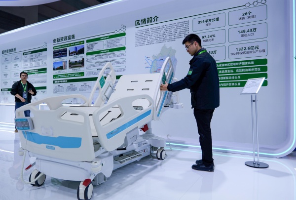 重庆赛康医疗有限公司自主设计研发生产的 “Z7z智能电动病床”,在传统电动病床的基础上进行了升级,融合了最新技术,可以做到24小时无人值守看护,实现远程监控、远程操作等,极大程度地解放医护人员工作压力,提高工作效率;重庆德川医疗器械有限公司的展出的电动腔镜切割吻合器主要适用于腔镜下外科手术切割缝合工作,除了能够对脏器以及肠内肠道进行切除之外,还能对血管进行切割缝合,有效减少患者手术时间,减少病人痛苦;重庆市东恩科技有限公司参展的移动DR采用灵巧升降机身设计,只有100多公斤,较同类型产品更加轻便,方便医护人员携带它进村入户为行动不便的群众检查身体,把优质医疗服务送到“家门口”;重庆中智医谷研究院的参展产品包括类器官培养基、生物人工血管、生物人工角膜、肌腱修复材料等,能够为单一来源的组织器官修复和更换提供更多选择;重庆星姿生物科技有限公司参展的产品涉及医美术后、日常家用护肤等,其中明星单品氨基酸洁面泡泡的最大特点是清洁力强、洗完不紧绷,并且温和不刺激、术后可用。