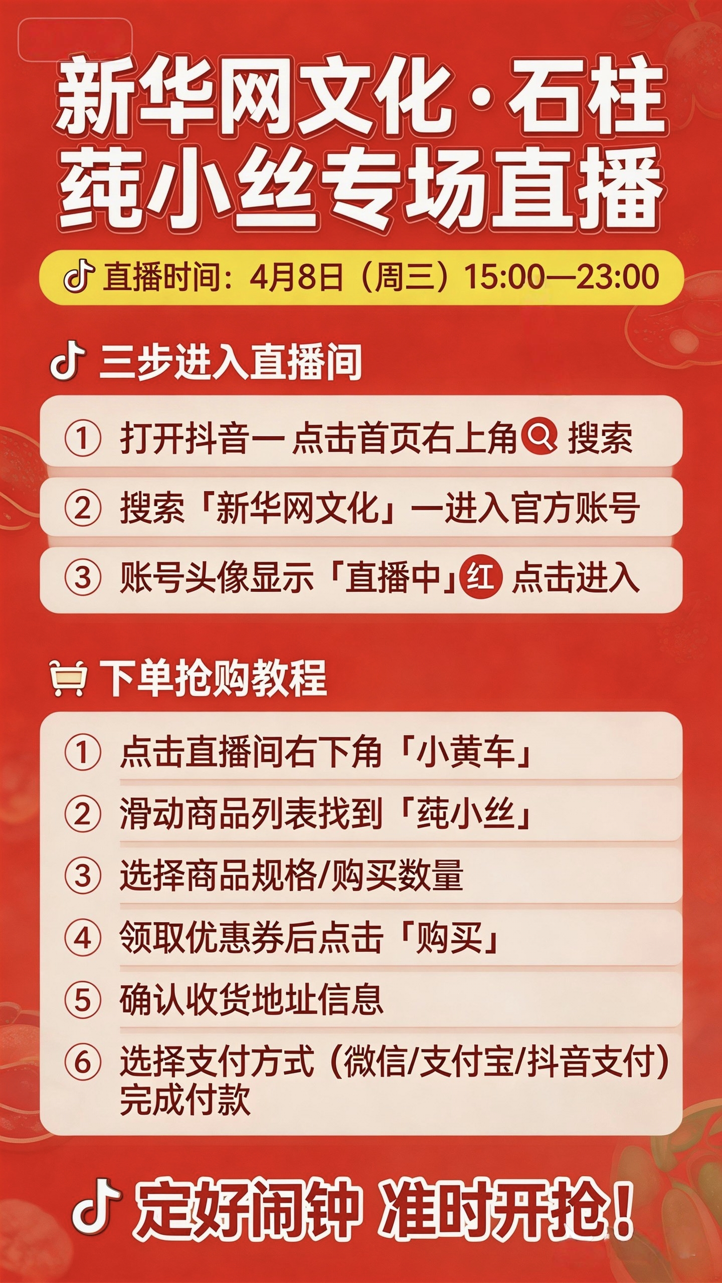 本次新华网文化抖音专场直播,以权威媒体公信力赋能地方特色产业,通过精准流量与直播带货,拓宽石柱莼菜销路、提升品牌影响力。直播间内,主播将详细介绍石柱莼菜的生长环境、营养价值与烹饪方法,同步推出优惠购、限时秒杀等活动,吸引大量网友下单。此次通过官方直播间,能便捷买到正宗石柱莼菜,既尝鲜又助力乡村振兴。