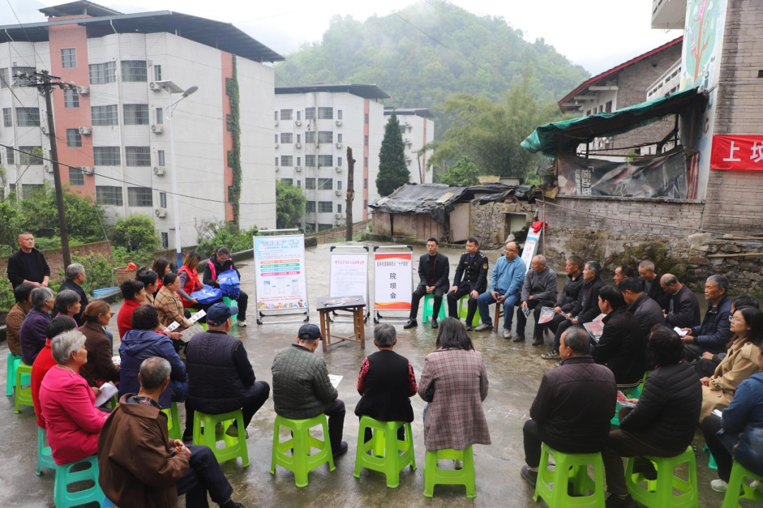 合川区应急管理局、区林业局在盐井街道开院坝会宣传森林防火工作