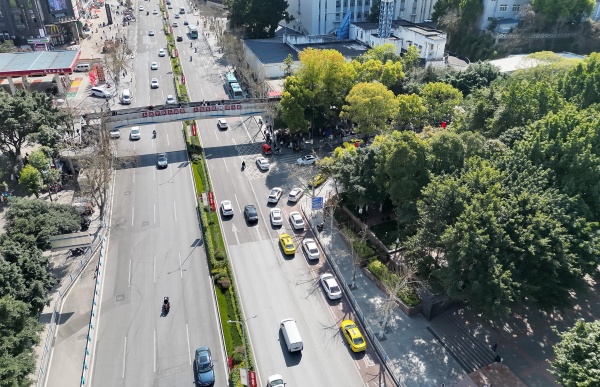 在凤天大道上空,无人机正在日常巡航执飞,今年以来已驱离占道违停车辆51辆,发现城市治理问题132件,处置率达100%。这背后,是沙坪坝区依托“AI+摄像头”算法赋能。
