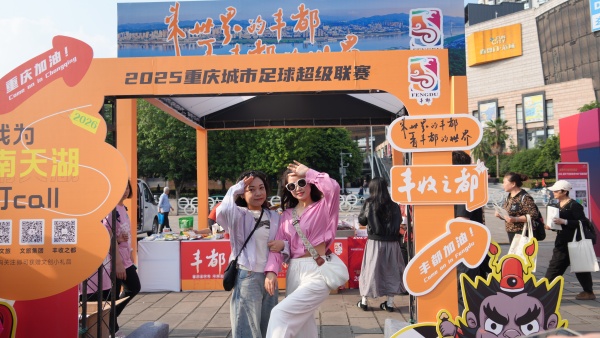 当天,丰都在奥体中心广场搭建“丰都文旅会客厅”,以“足下生辉、丰都出彩”为主题,借赛事热度推动“体育+文旅”融合,向全市球迷发出邀约:跟着渝超去丰都,看球赛、品美食、赏美景。