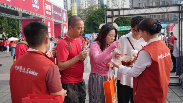 球迷试吃丰都麻辣鸡。