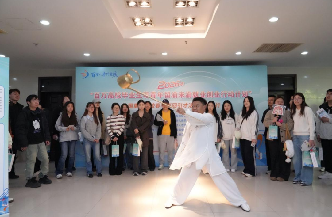 活动现场,国家级茶艺高级技师、全国技术能手陈应会大师的长嘴壶茶艺表演,以“金龙吐珠”“高山流水”等绝技,展现重庆非遗的灵动与匠心;渝派插花则融合巴渝山水意境,格调清雅,吸引学子驻足打卡、互动体验。从《新重庆 新机遇 新未来》宣传片的城市风貌,到非遗技艺的文化浸润,重庆以“产业实力+文化魅力+政策温度”的组合拳,留下深刻的“重庆印象”。