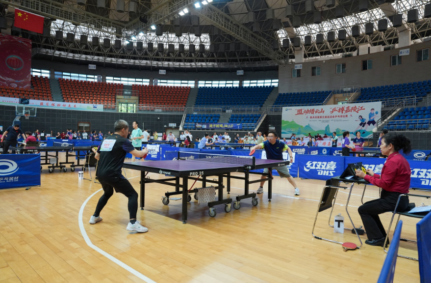 4月17日,重庆民盟第五届运动会乒乓球比赛,在北碚缙云体育中心体育馆正式挥拍开赛。来自全市24个民盟组织的两百余名乒乓球爱好者齐聚一堂,以球会友,共展风采。